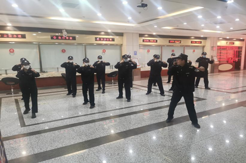駐勤保安員集體學(xué)習(xí)擒敵拳